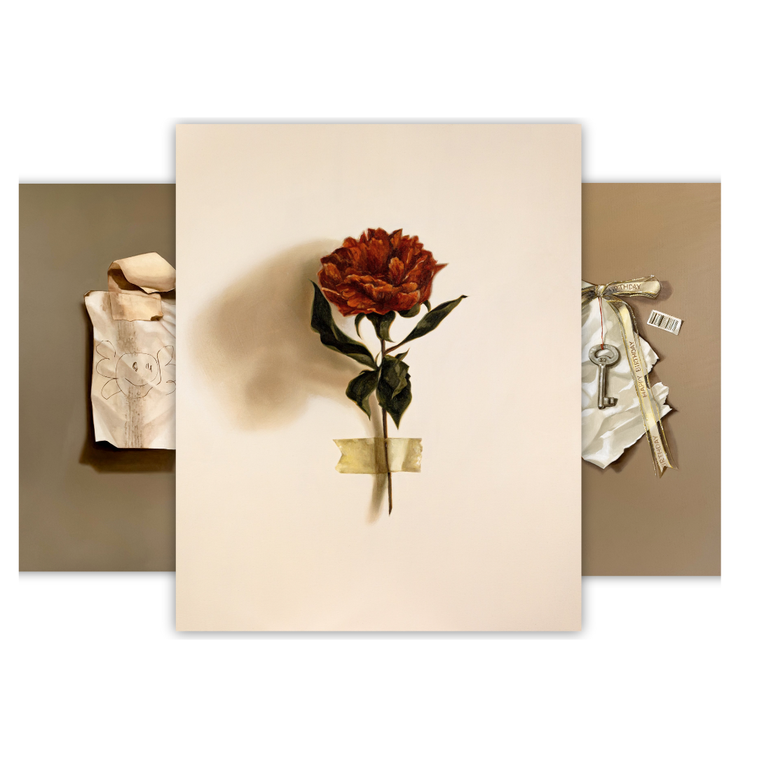 I take your story and translate it into a poetic, still-life-like composition — held gently, as if preserved on paper or wrapped in a memory.